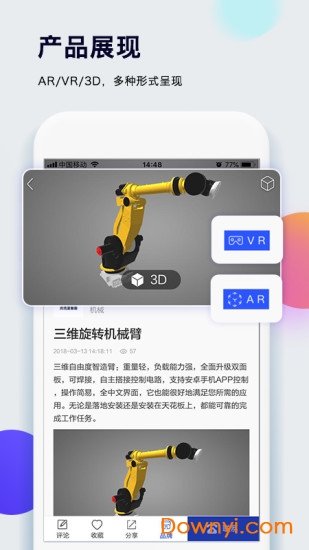 视趣作为一款连接工业的工匠工具,让你5分钟把工业设计add转换为ar/vr。尽可能平移pc平台功能的基础上,为用户进一步拓展使用场景,使其能更高效、更便利地去使用ar/vr/3d功能。能够快速处理三维模型,提供ar/vr技术支持,把打破单一的工业设计展现形式作为自身使命,以低门槛、低成本、高效率为主旨,为个人或商家的原创工业设计多样化展示开辟一方天地。加入视趣,上传你所想,收藏你所爱,一起分享交流吧。