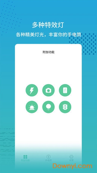 超亮闪光灯在现在随处可见的路灯削减了我们对手电筒照明的需求,我们开始要求手电筒app有更多的功能,超亮闪光灯希望他不仅仅只是用于照明,还能做闪灯、彩灯、紫外线手电筒、来电闪灯、来电闪光led灯验钞灯等多种多样的照明灯光功能。v