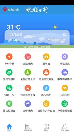 冰城e行即是一个出行服务平台,又是一个政务服务平台, 同时还是一个公共信息发布平台。