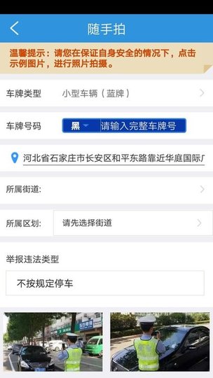 2、手机客户端:通过“冰城e行”手机客户端“随手拍”版块将举报内容发至交警部门进行举报。