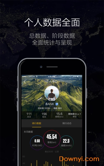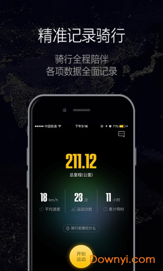 2.记录【骑行轨迹】:基于gps定位技术和特有算法,精确追踪骑行轨迹;实时监测时速、配速、消耗卡路里及更多运动数据;历史记录,数据统计;在社交网络中与朋友们分享你的进步!
