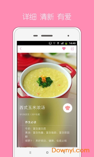 -离线下载;离线下载功能让您摆脱网络的限制,随时查看优质辅食食谱。