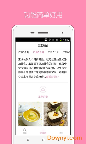 -辅食食谱;为不同阶段的宝宝精心挑选的辅食,让妈妈做的用心,宝宝吃的舒心;营养搭配,让宝宝成长更健康。
