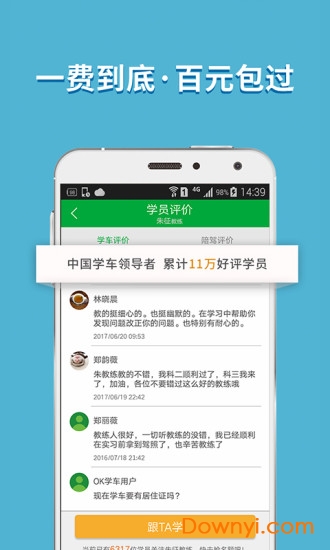 ok学车包含从在线报名、分配学车顾问、体检练车直至考试拿证的全流程。全程学员打分评价考核机制,学员对教练服务评分直接关联教练奖金,全力保障学员的学车体验。不满意可退,教练不满意随时可换!是我们的服务承诺。