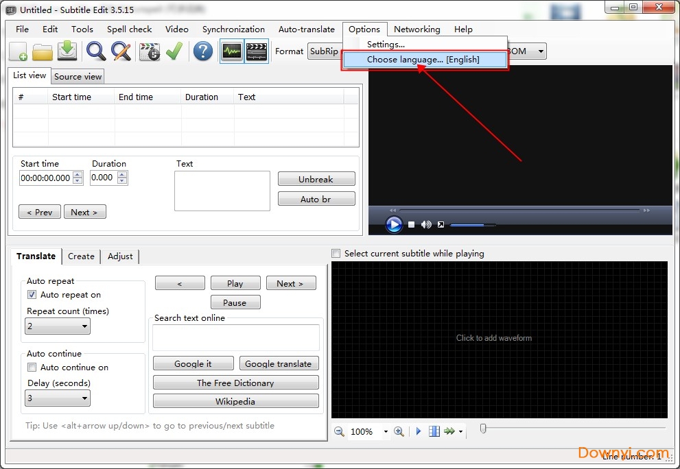 6,内置 google 翻译引擎,可以直接对字幕进行各语言间的翻译。