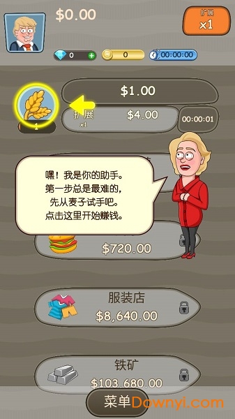 3、你可以通过点击产生更多的小麦来积累资本,并通过投资其他行业扩大资本;