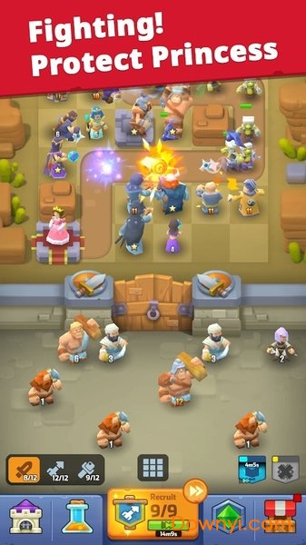 向导,游侠等等。尝试在无尽的战斗中勇敢地当指挥官。不断合成新英雄,以保护公主免受妖精和怪物的侵害。当公主的血条清除后,您将失败。