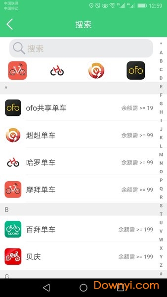 联合当前所有单车品牌,一个账户骑行所有品牌单车,共享,快捷方便,绿色健康。