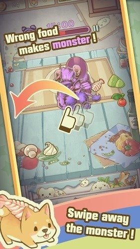 喂错食物会把动物变成怪物,马上往画面左边把怪物滑掉!