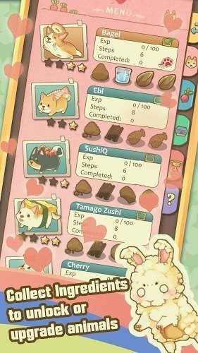 玩游戏会得到金币,使用这些金币在商店里购买食材包。食材包里取得的食材可以在动物图监里解开新的动物。游戏结束後玩转轮可以取得更多的食材,食材包或金币。