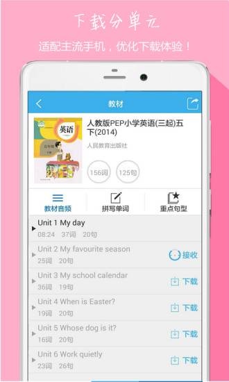纯正原教材配套音频,单元同步中文意思,让你学到哪儿练习到哪儿掌握到那儿。