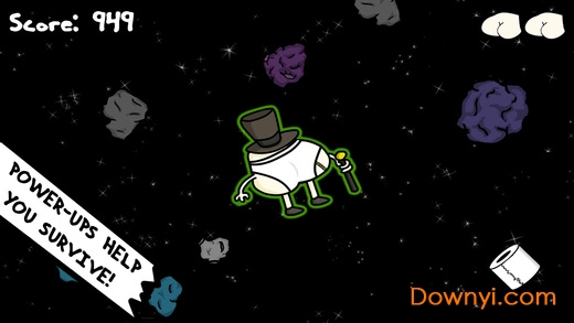 2.于是你就需要在太空中飞行穿梭,完成收集卫生纸的任务,同时还要收集可用于修理飞船的零件,在这一过程中还要特别小心太空中漂浮的陨石碎片或者速度极快的小行星。