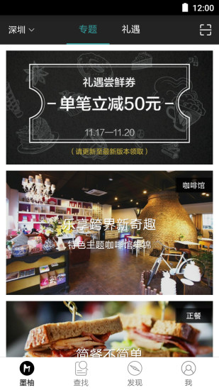 墨柚是专注于发现城市精选去处,围绕美食、休闲、娱乐..提供高品位参考及服务的应用。