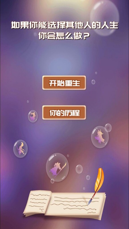 一款人生重启模拟类文字游戏,游戏中玩家可以自由选择历史人物、小说人物、影视人物、游戏人物等身份来重启人生,谱写百变人生旅程,畅享多姿多彩的人生体验!