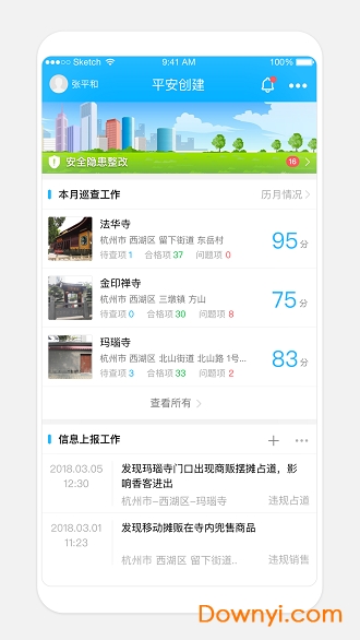 软件可以帮助网格员报场所检查情况,可以帮助民宗干部处理查看上报事件,可以帮助所负责人查看自己所在场所的具体信息,各项指标得分情况等。