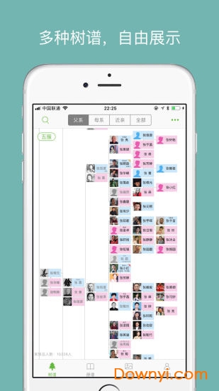 3、家族树,完美展示的家族脉络,邀请家人加入之后,可以在家族五服范围内共享信息。