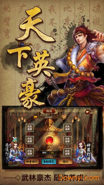 1、在关卡中遇到的各路豪杰,都有可能加入你的队伍,与你并肩战斗!豪杰之间也会有不同的侧重,擅长物理攻击或者气劲攻击,擅长防御或者辅助等等。豪杰在培养后,还可以领悟精妙的武功,大幅度的提高豪杰自身的能力;