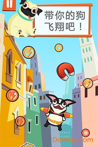 飞天狗大冒险hd手机版是一款以q萌宠物狗为游戏主角的动作跑酷手机游戏,这款游戏中还加入了丰富的剧情主线和飞行玩法元素,全新画面搭配经典玩法,赶快来下载体验吧,更多精彩好玩的手游尽在当易手游网!!!