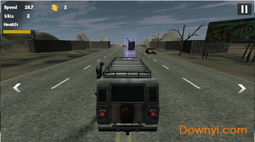 3、玩家要驾驶着汽车在僵尸横行的公路山行驶,僵尸会吸附在汽车上攻击你,你要利用一切外界环境将僵尸杀死,注意躲避各种障碍,在收集金币和躲避僵尸的同时还有医疗包和油管可以获取,玩家只需要操作左右方向即可。