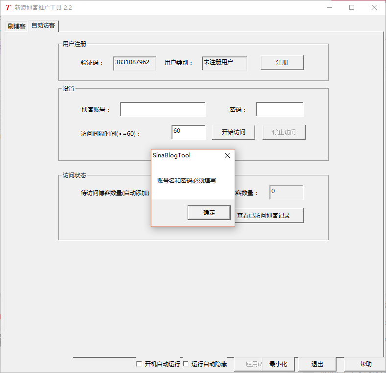 新浪博客推广工具是一款专业实用的微博博客推广软件。它能帮助你快速提升博客访问量、访客真实流量和点击率关注。真实展示、宣传、推广自己博客的目的和良好的广告效果。使用新浪博客推广工具可以帮你快速刷访问量,让你再也不会因为人气不高烦恼。并且可以自由的选定推广的数量、时间等。