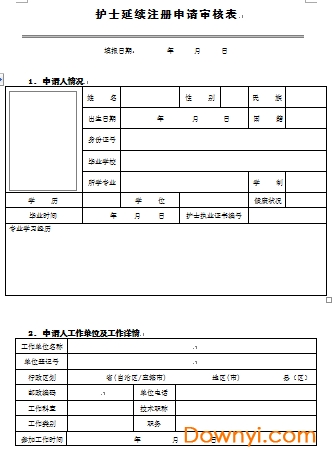护士证延续注册表介绍