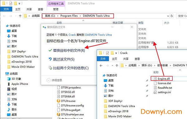 5、将修改补丁“Engine.dll”复制到安装目录下替换原文件即可,一般默认安装目录为“C:\Program Files\DAEMON Tools Ultra”