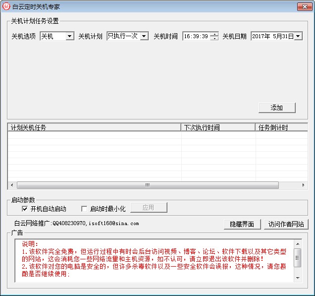 白云定时关机软件功能: