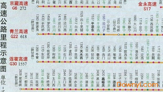 甘肃省国道里程表全图下载 586KB