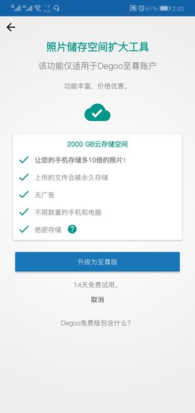 1、性能和稳定性已大幅提升。感谢使用degoo:100gb免费云备份空间。