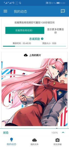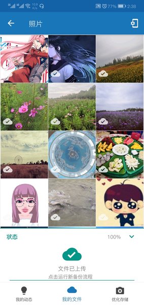 3、非常智能贴心的自动化功能也是蛮不错的,应用会自动而且相当智能的探测手机新增的照片或者是文件,然后进行上传,如果想备份的,也可方便点击选择备份,而且比较方便的是,会提示一个最新文件状态,不用担心会重复备份文件;