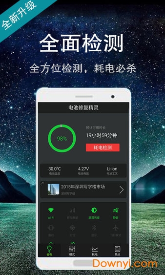 电池修复精灵是一个省电工具,关闭耗电应用、优化硬件设置、深度省电,只需一键。更多省电功能、省电秘籍,让省电更全面。
