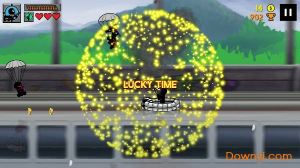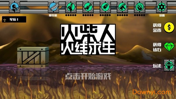 2、按住屏幕火柴人向前移动,松开屏幕火柴人向后移动,向下滑动潜水,向上滑动跳跃,自动瞄准射击的模式更加刺激,各种道具和装备帮你快速消灭敌人;