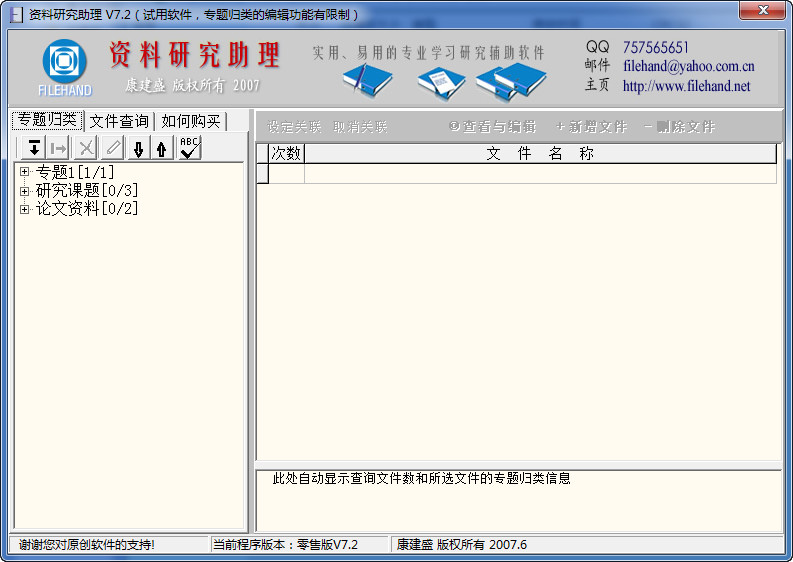 1、独创性强。首创文件与专题一对多关联功能和强大的专题归类功能;首创文件内容快捷标注与文件跳转功能;首创文字资料、电子书籍与其他文件资源的整理收集功能。