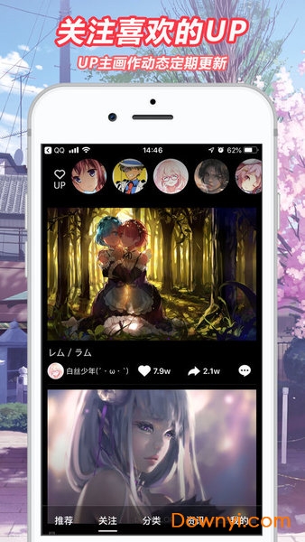 - 全球up主入驻,关注你喜爱的up主,及时查看ta的最新画作。