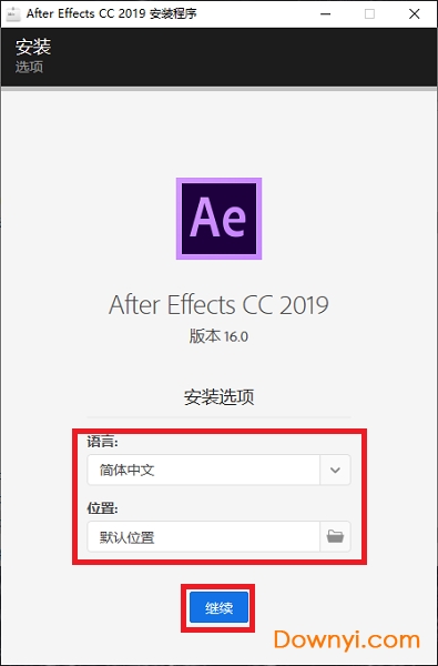 2、安装选项,语言默认简体中文,你可以选择安装位置或者默认,小编在这里选择默认,点击“继续”;