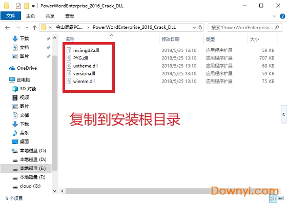 5、将五个dll文件复制到软件安装根目录,默认的路径为:C:\Program Files (x86)\Kingsoft\Power Word Enterprise 2016