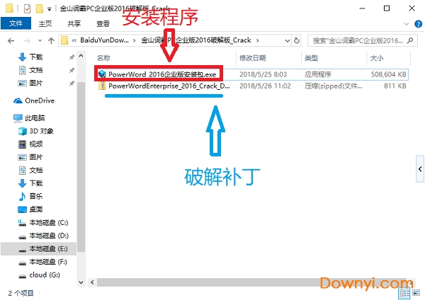 1、在本站下载资源并且解压,得到金山词霸2016企业版和修改补丁;