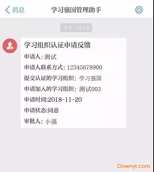 4、接收到上级学习组织管理员审批通过的消息通知,就表示认证成功。