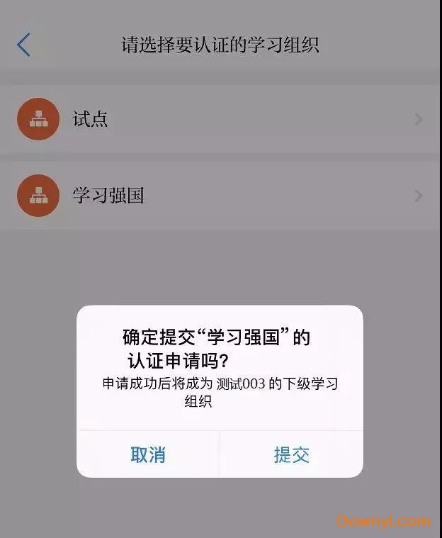 2、点击进入认证申请页面,选择需要认证的学习组织。