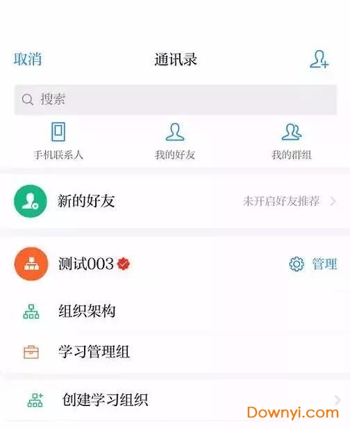2、通讯录-已认证学习组织右侧“管理”-学习组织通讯录。