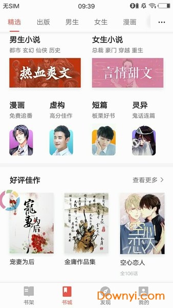 4、分类很详细,题材也很丰富,按照出版、男频、女频以及漫画、听书和杂志等划分;
