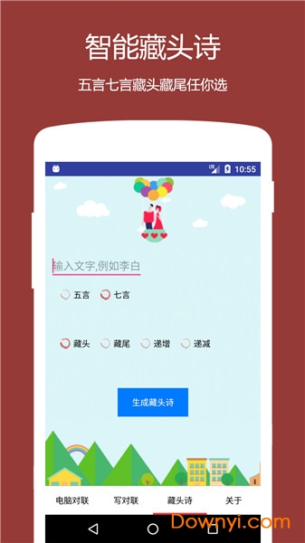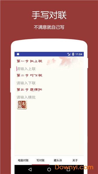 电脑对联app是一款手机对联生成器软件,传统春节每家每户都要贴对联,当您创作好上联之后,这款软件可以自动生成下联和横批,还支持分享功能,过年必备神器!欢迎到当易网下载使用!