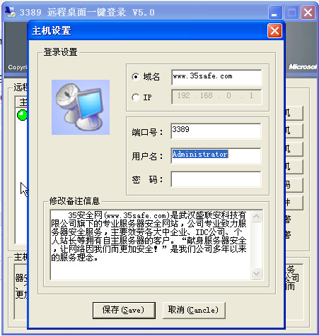 接windows终端服务的软件,它可以保存曾经输入过的windows帐记和密码,并且进行加密处理,不但安全而在以后登录时无需再次输入,非常方便。另外,它也可以监视远程服务器的网络故障,并在出现故障时进行报警。