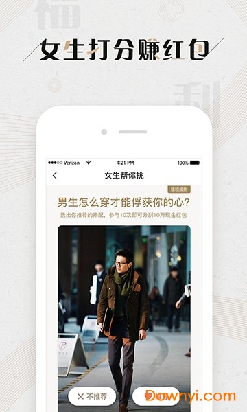 野兽先生商城为你提供了一个非常不错的挑衣体验。是不是自己也不知道还不好看?来下载这款软件,你可以让女生为你挑衣服,而且还有相应打分,让你在买衣服的时候让你的选择困难症不再干扰你。选不好那就来下载吧!