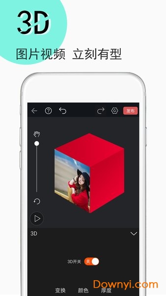 【3d模式】3d效果开关,位置、中心点、缩放、旋转,颜色,厚度任你调节。