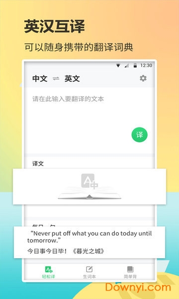 英语单词君app是一款非常不错的学习英语的软件,软件中你可以尽情的进行英语的学习,让你可以随时随地的都能学习到真正的正规的英语语言,帮助你提高学习效率,增强你的基础能力,有需要的朋友欢迎到当易网下载!