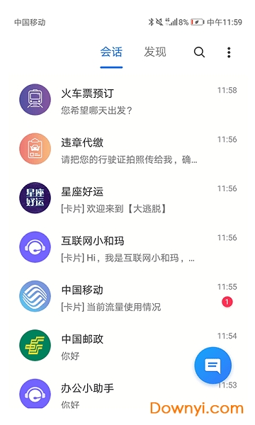 公共服务和商业服务以富媒体消息和交互式卡片的形式呈现在用户的消息界面上,用户可以随时与服务提供方交流或选择服务。