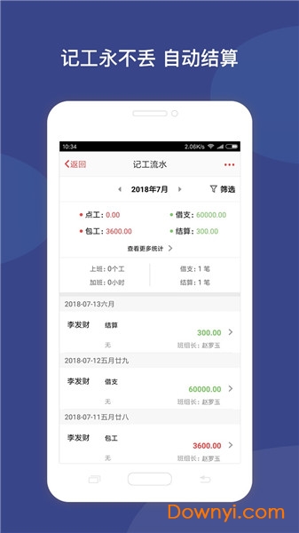 工地记工:手机免费记工记账,记工天、记工时、考勤、记账等数据一键保存;