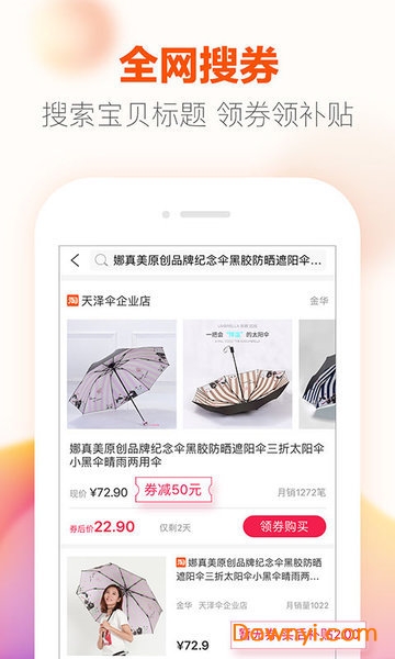 与百万淘宝天猫商家合作,每日发放海量大额优惠券供用户领取使用 ,优惠力度前所未有,价格低到离谱!
