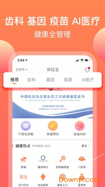 爱康体检宝app,爱康集团旗下互联网个性化精准健康管理平台,意在打破体检套餐千篇一律的局面,为个人和企业客户量身定制专属体检方案,开启个性化体检的新旅程。
